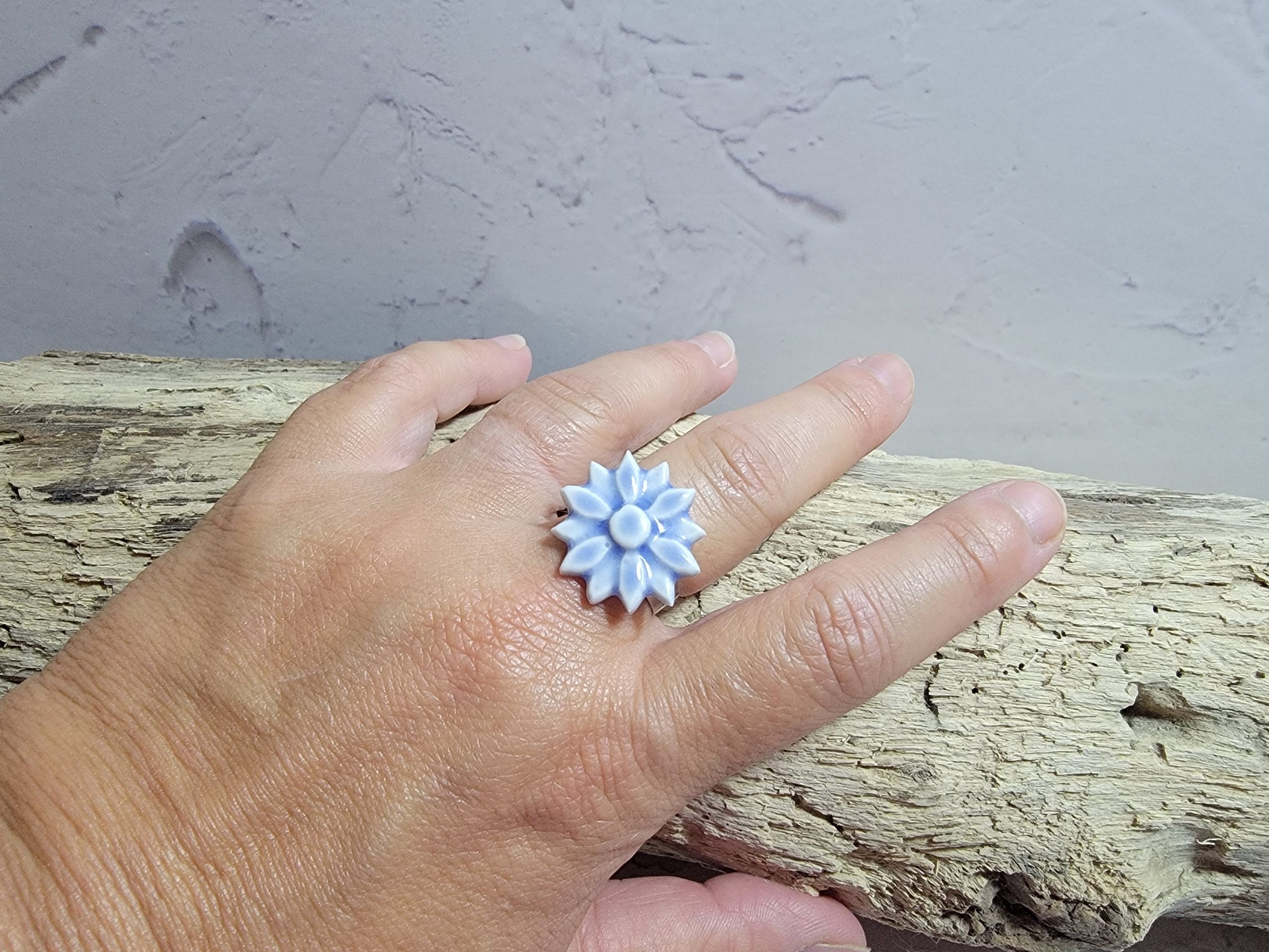 Bague femme fleur en céramique faite main, délicate et raffinée. Une création poétique inspirée par la beauté naturelle des fleurs.