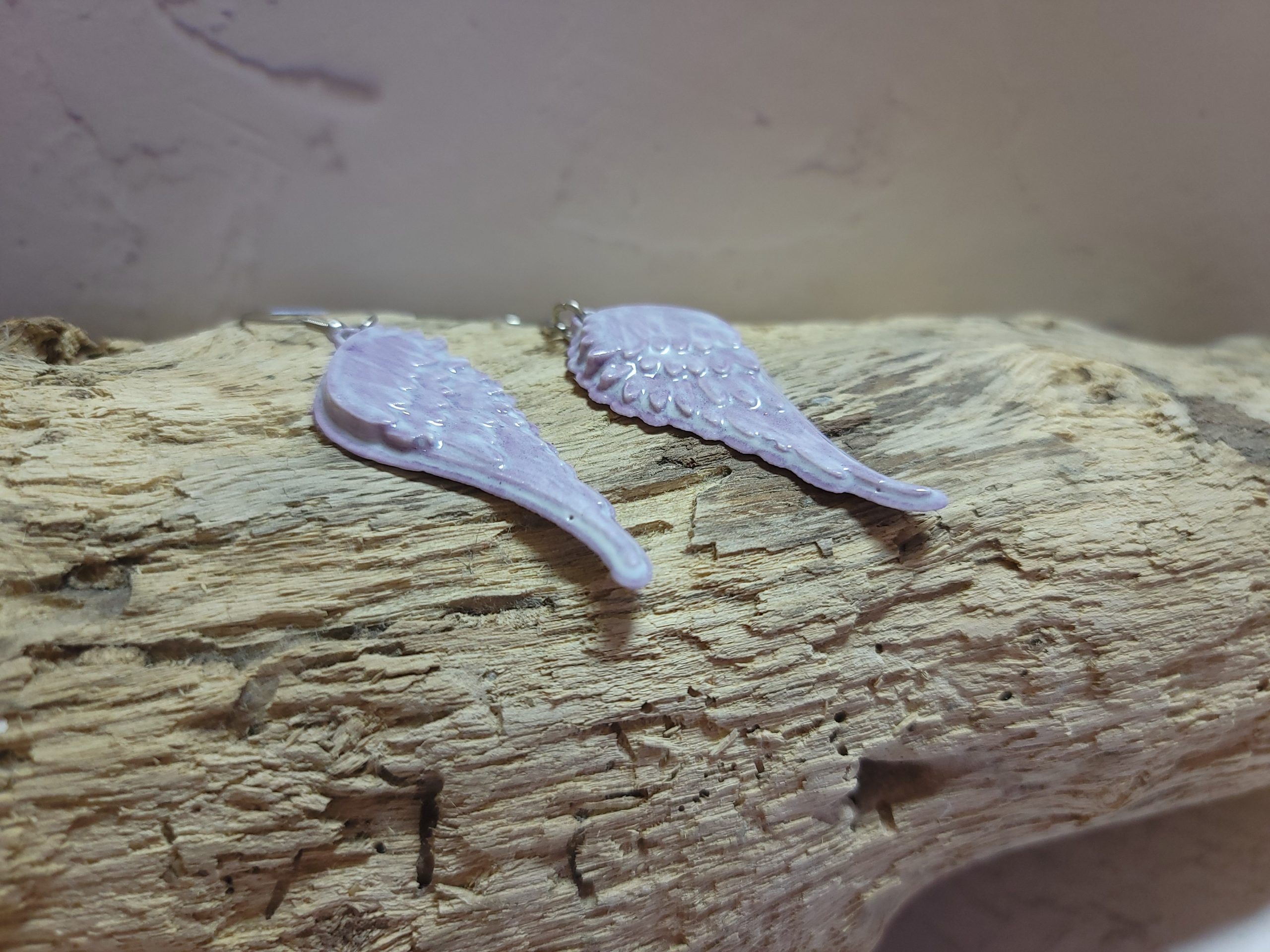 Regardez ces boucles d’oreilles. Ce sont des ailes d’ange. Elles sont faites en céramique. Et vous pouvez les mettre avec tout. Par exemple, avec des habits de tous les jours. Ou bien avec une tenue plus chic. Elles donnent du charme. En plus, elles sont belles et sortent de l’ordinaire. Donc, c’est un bijou spécial, juste pour vous.