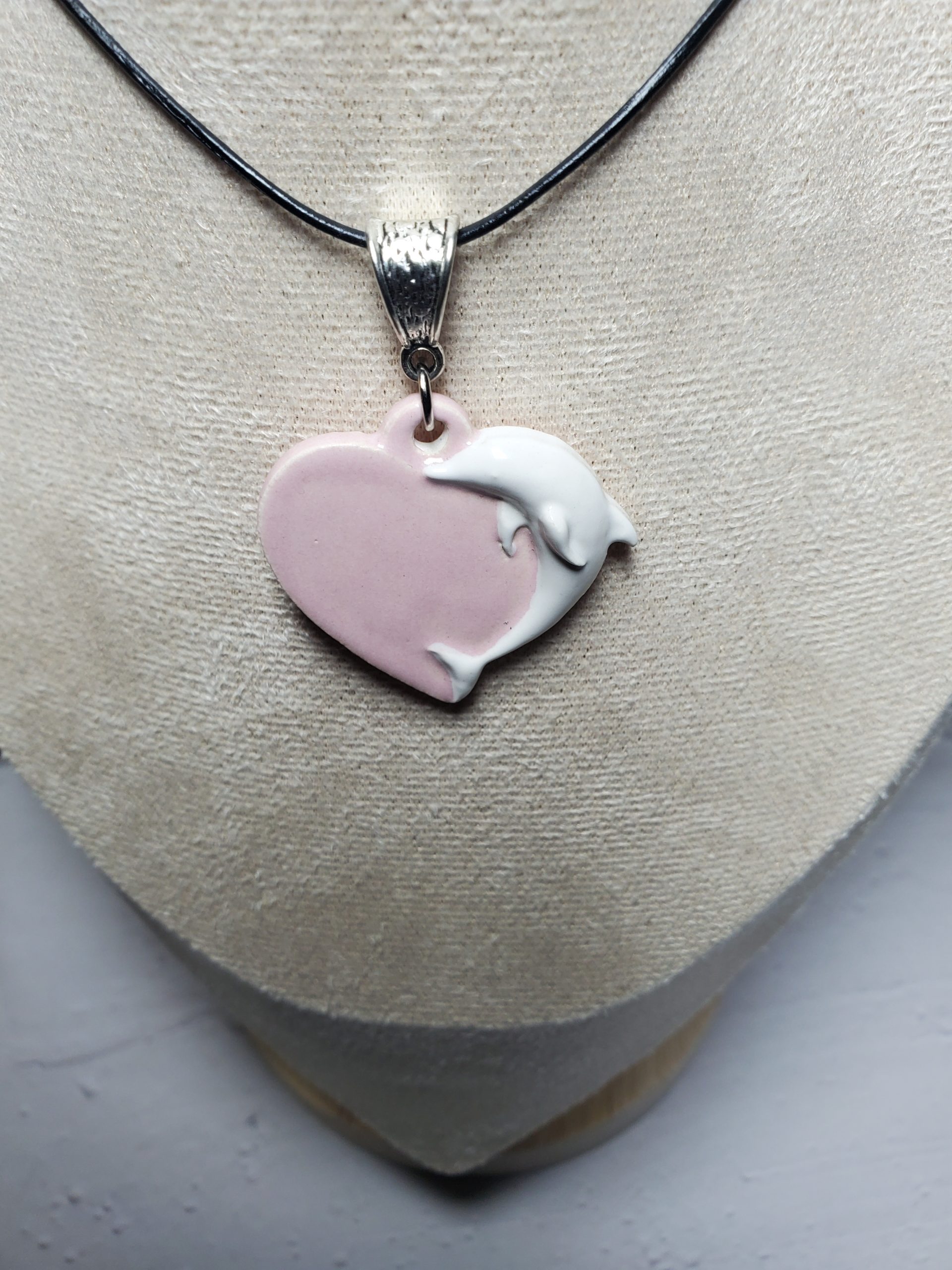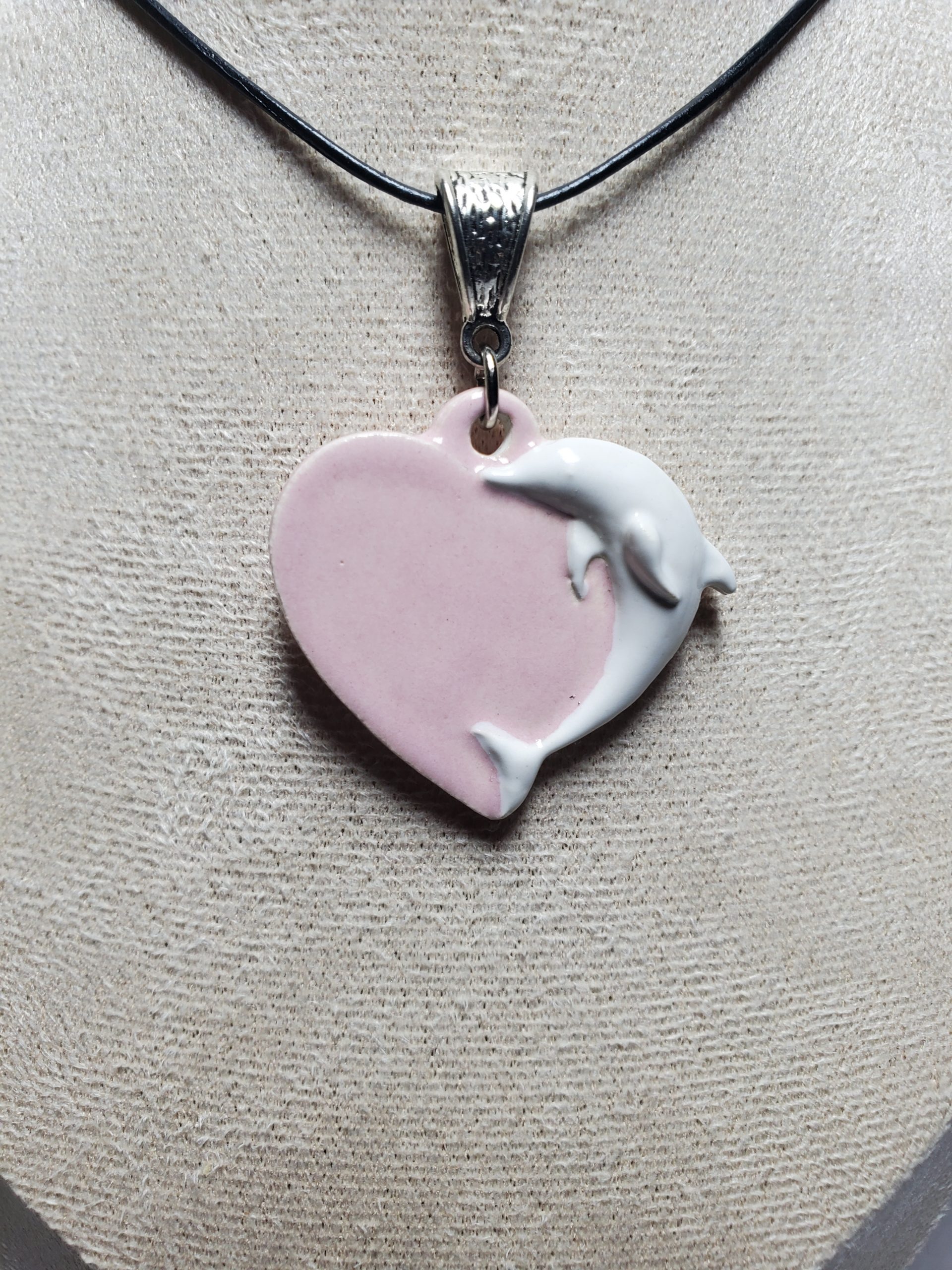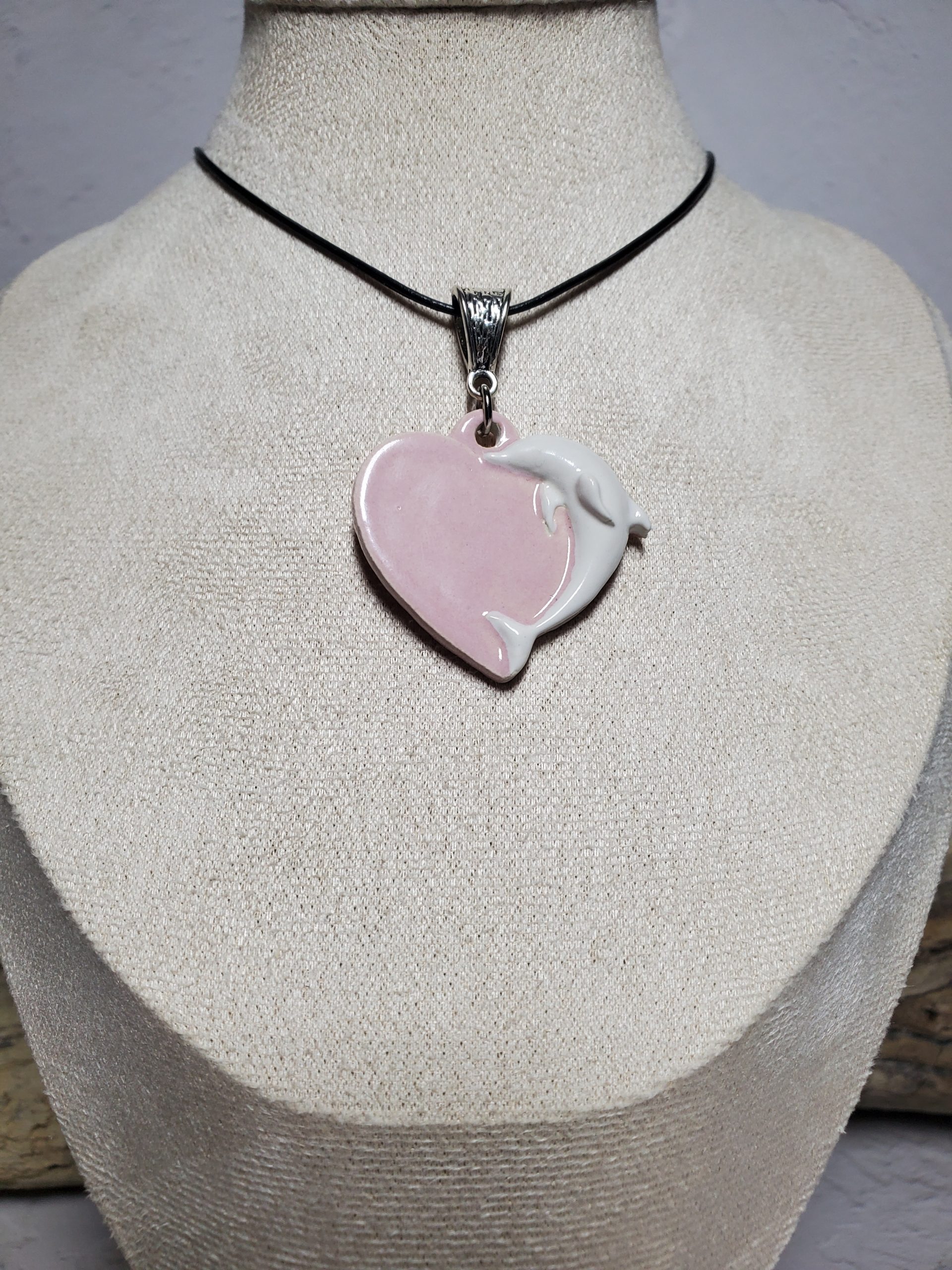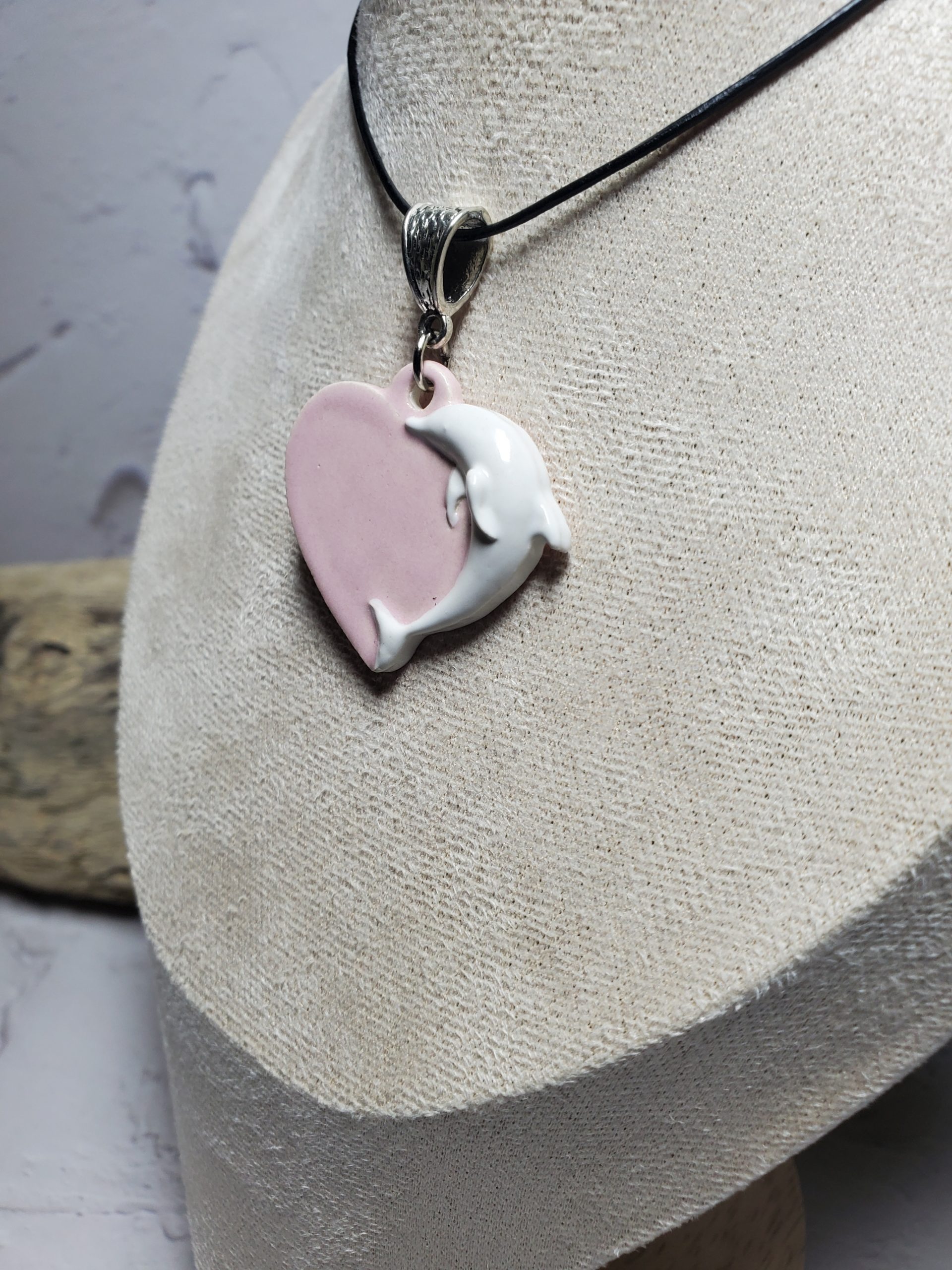 Plongez dans un océan de tendresse avec ce pendentif cœur orné d’un délicat motif dauphin en céramique. Léger et agréable à porter, ce bijou sera le compagnon idéal de toutes vos tenues, apportant une touche de douceur à vos journées et une note de romantisme à vos soirées.