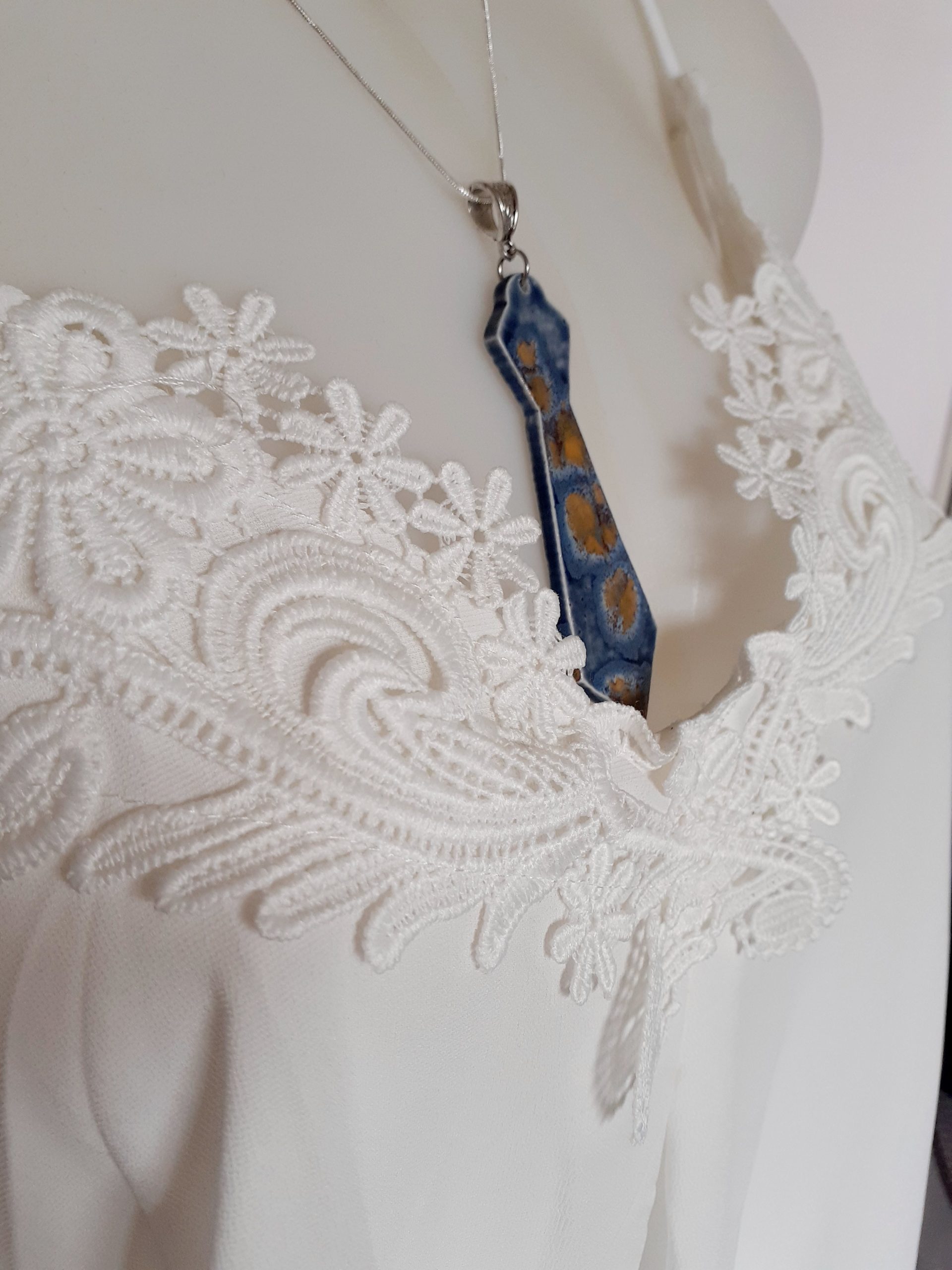 Style : Ce pendentif original en forme de cravate en céramique se marie aisément avec des tenues décontractées ou professionnelles. En effet, il ajoute une touche d’élégance et de sophistication à votre look. De plus, il apporte une dimension artistique et audacieuse à votre style. Ainsi, il devient un accessoire idéal pour rehausser votre apparence avec originalité et distinction.