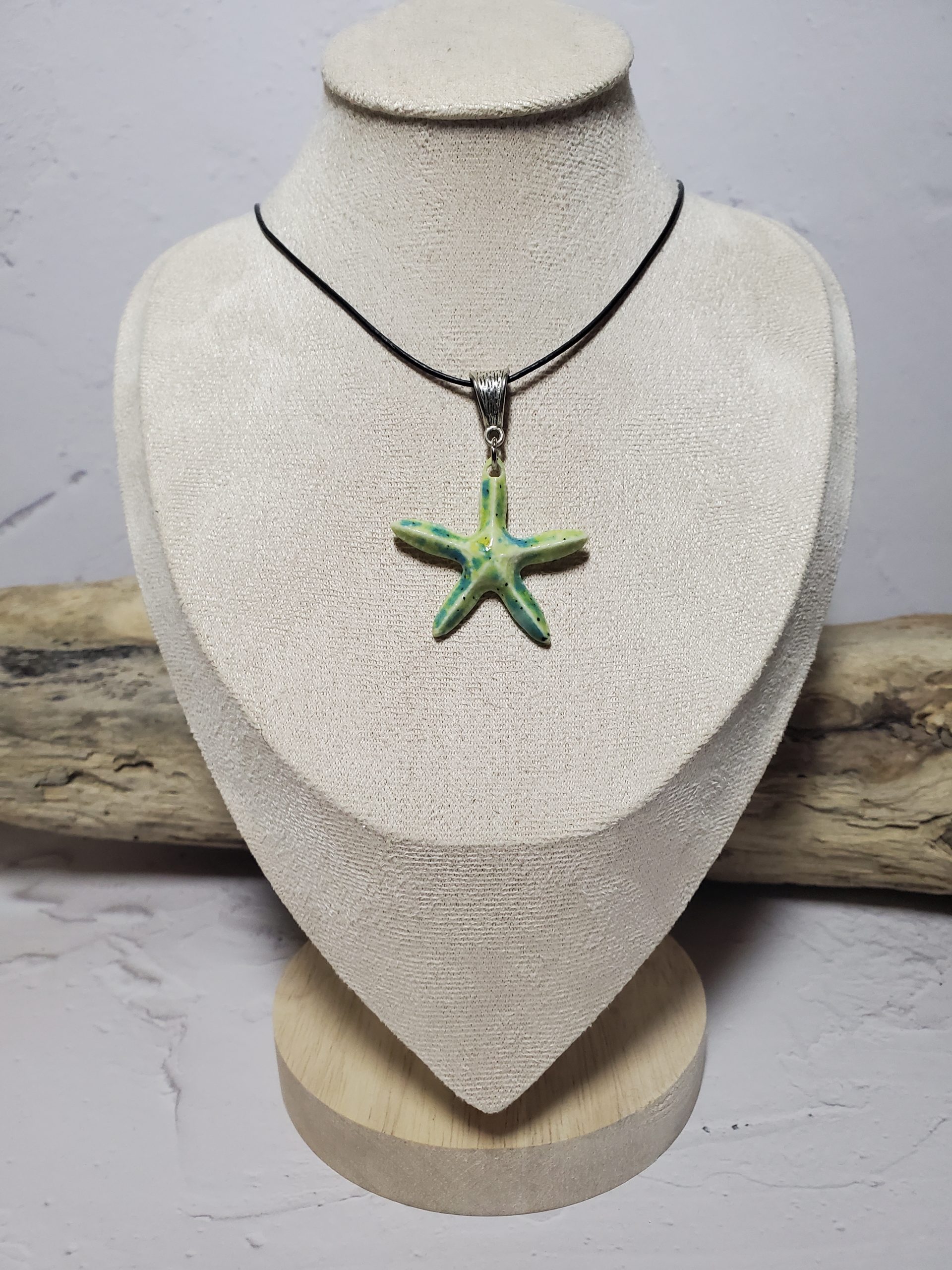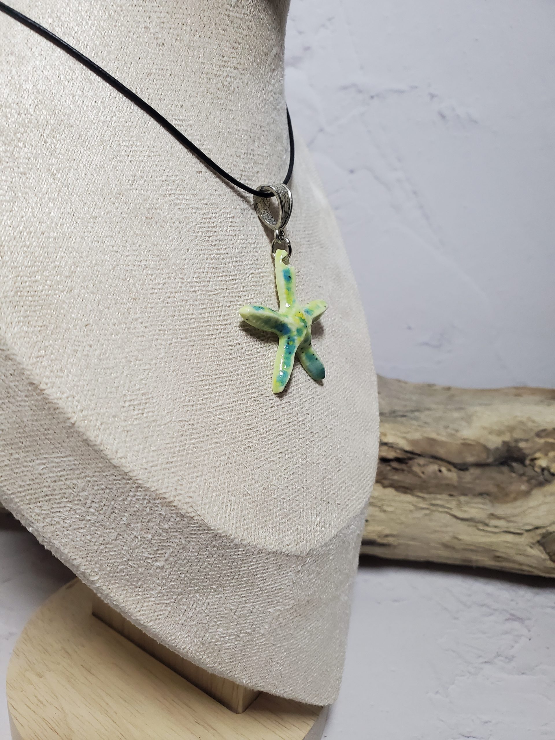 Ajoutez une touche marine à votre style avec ce pendentif étoile de mer en céramique. Élégant et unique, il complète vos tenues avec charme.