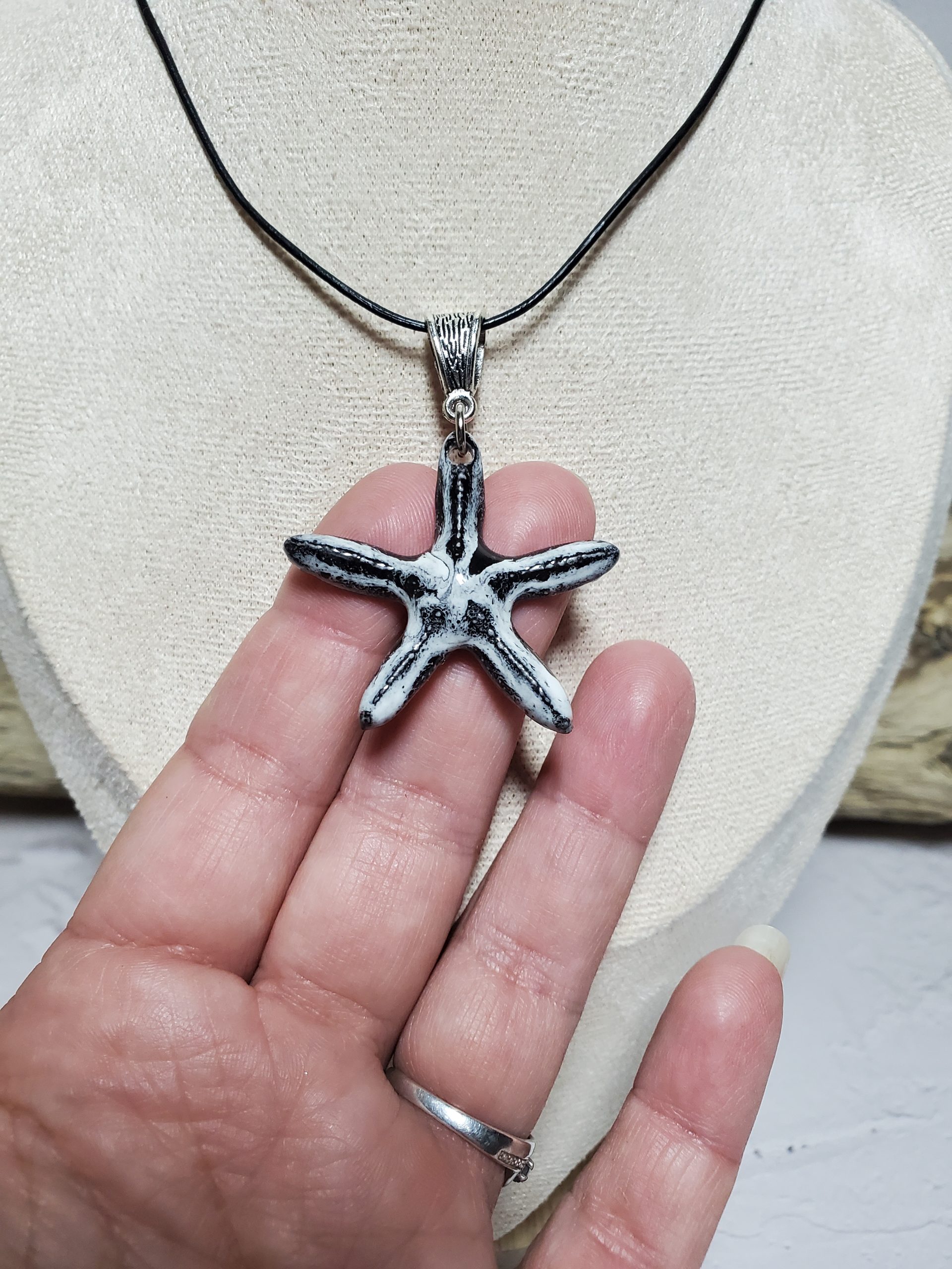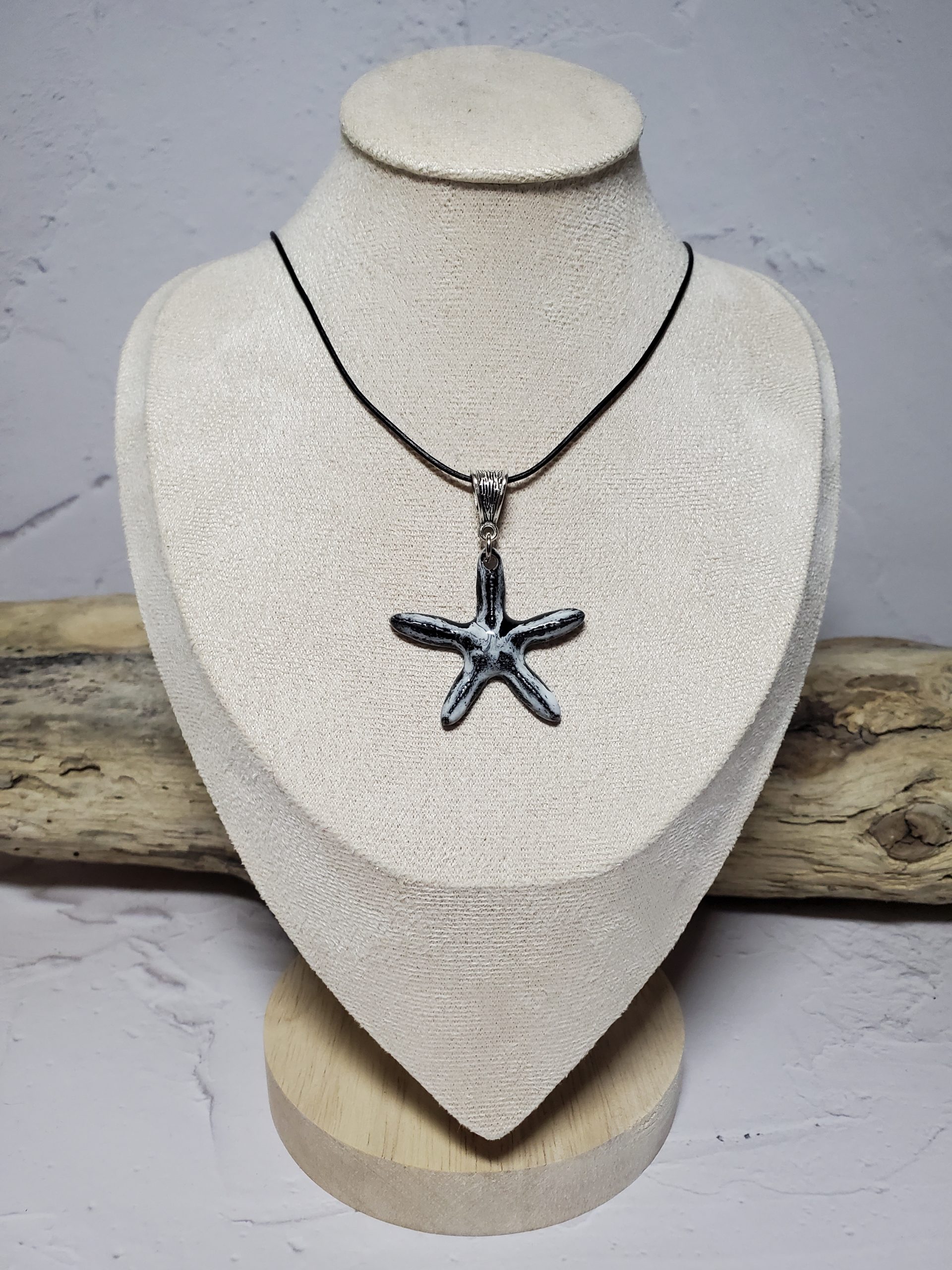 Ajoutez une touche marine et artisanale à votre collection avec ce pendentif étoile de mer en céramique. Élégant et unique, il est conçu pour sublimer toutes vos tenues.